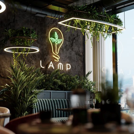 - Trang trí quán cà phê, bar, và nhà hàng: Ánh sáng đèn LED Neon có thể làm nổi bật không gian của các quán cà phê và nhà hàng bằng cách tạo ra một phong cách độc đáo, tùy theo ý tưởng thiết kế, có thể là vintage, hiện đại hoặc retro. Các chủ quán có thể sử dụng đèn LED Neon để tạo ra những không gian ấn tượng, thu hút sự chú ý của khách hàng, nhất là giới trẻ, khiến cho họ có những điểm đến thú vị hơn để chụp hình check-in.