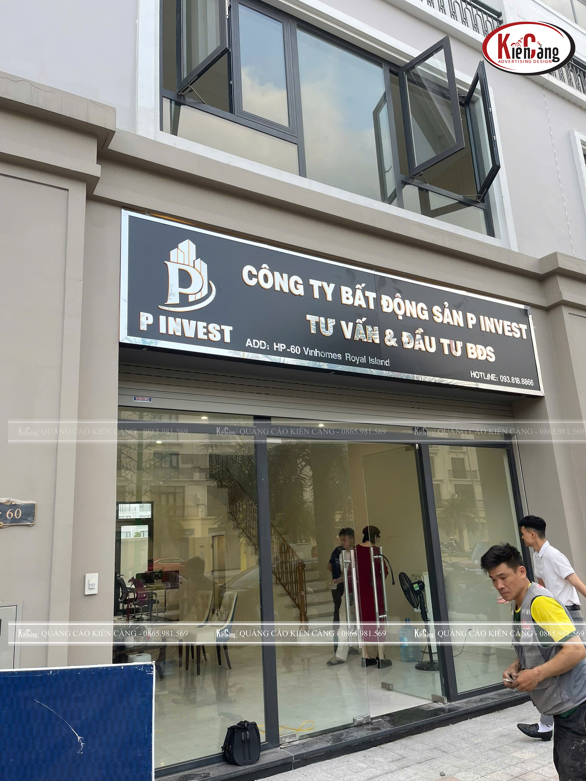 Thiết Kế & Thi Công Biển Hiệu Công Ty Bất Động Sản P INVEST – Sang Trọng, Hiện Đại, Thu Hút Mọi Ánh Nhìn
