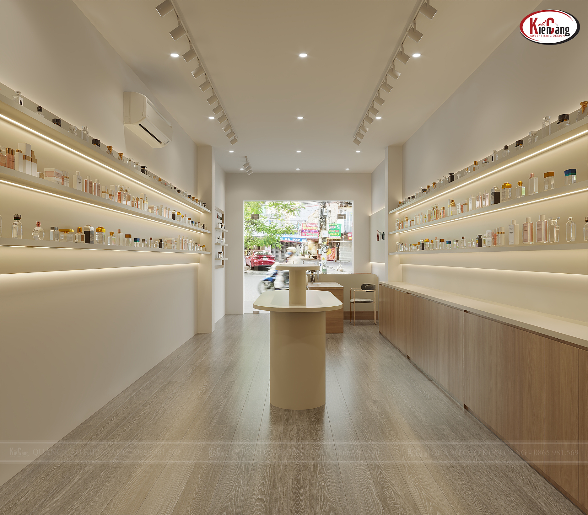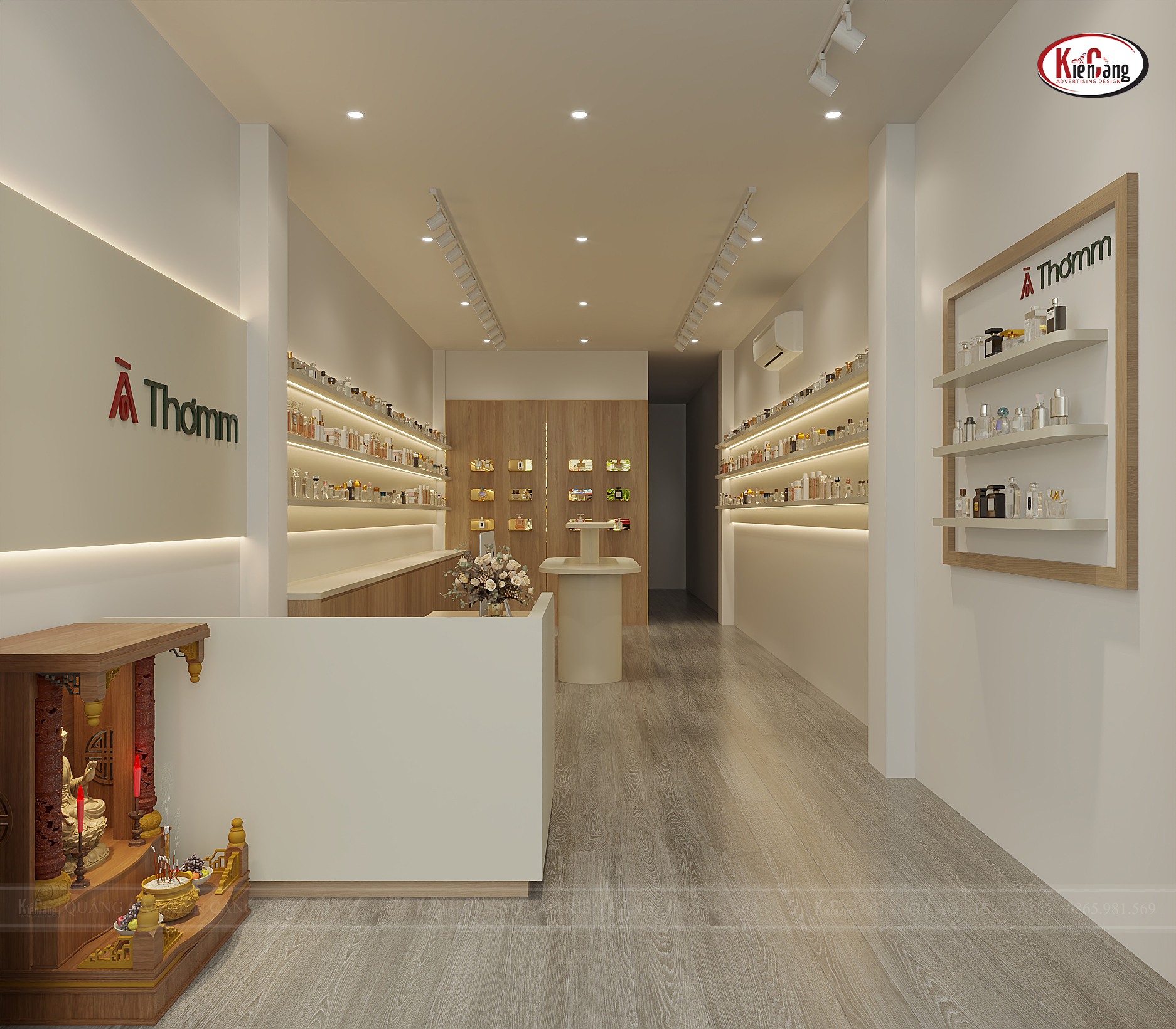 Thiết kế 3D biển hiệu và nội thất cửa hàng nước hoa À Thơm – Giải pháp nâng tầm thương hiệu hiện đại