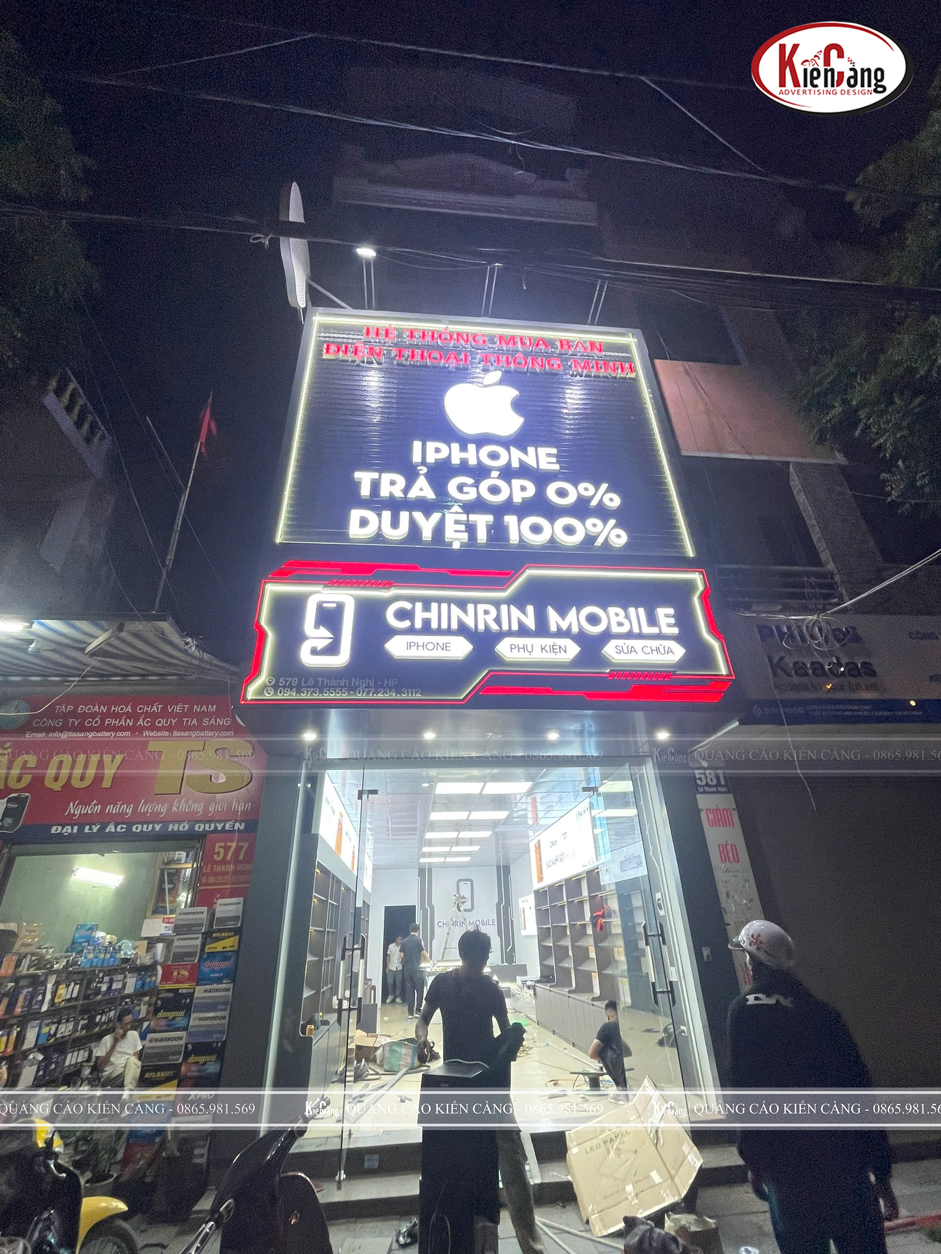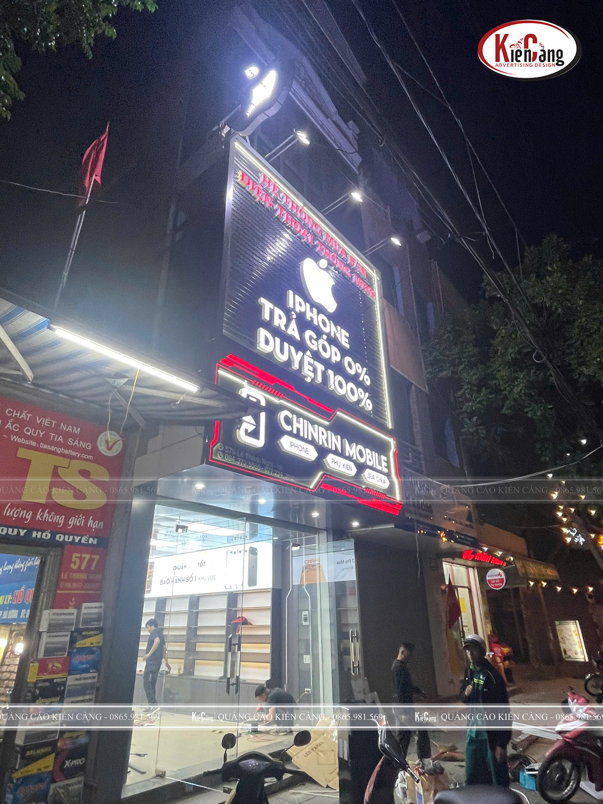 Trong lĩnh vực kinh doanh điện thoại di động, một biển hiệu đẹp không chỉ giúp thu hút khách hàng mà còn là yếu tố quan trọng để xây dựng hình ảnh thương hiệu chuyên nghiệp. Mẫu biển hiệu CHINRIN MOBILE dưới đây là một ví dụ điển hình cho thiết kế hiện đại, nổi bật và cực kỳ hiệu quả vào ban đêm.