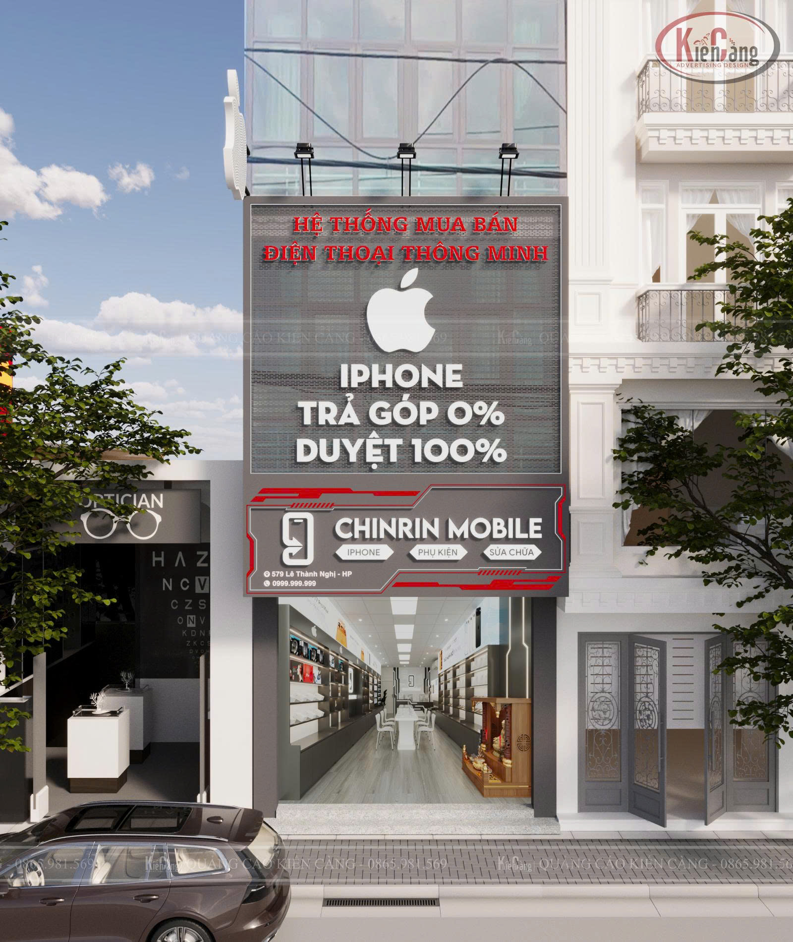 Biển hộp đèn “CHINRIN MOBILE” được thiết kế riêng biệt, giúp tăng độ nhận diện thương hiệu ngay tại mặt tiền.