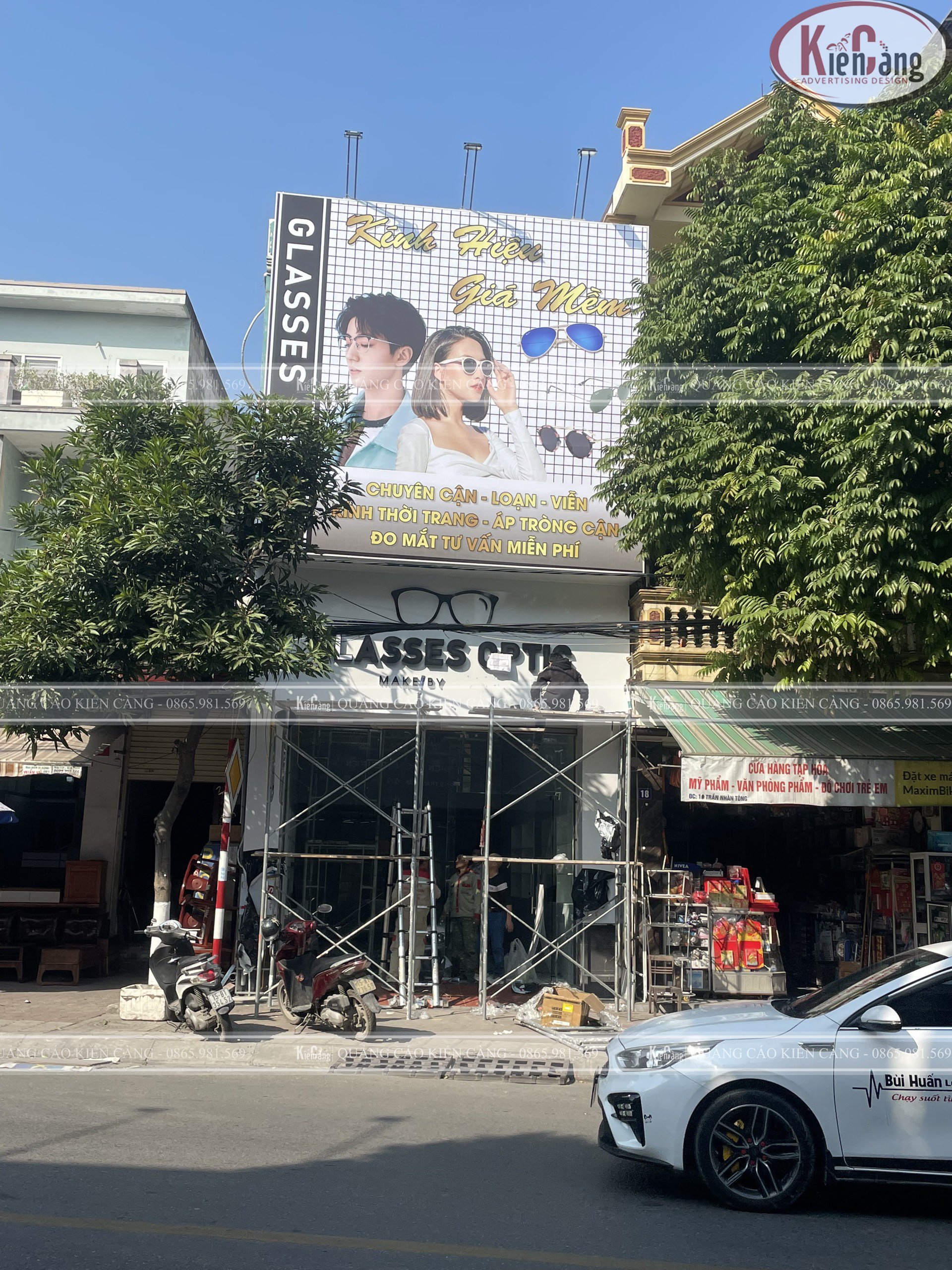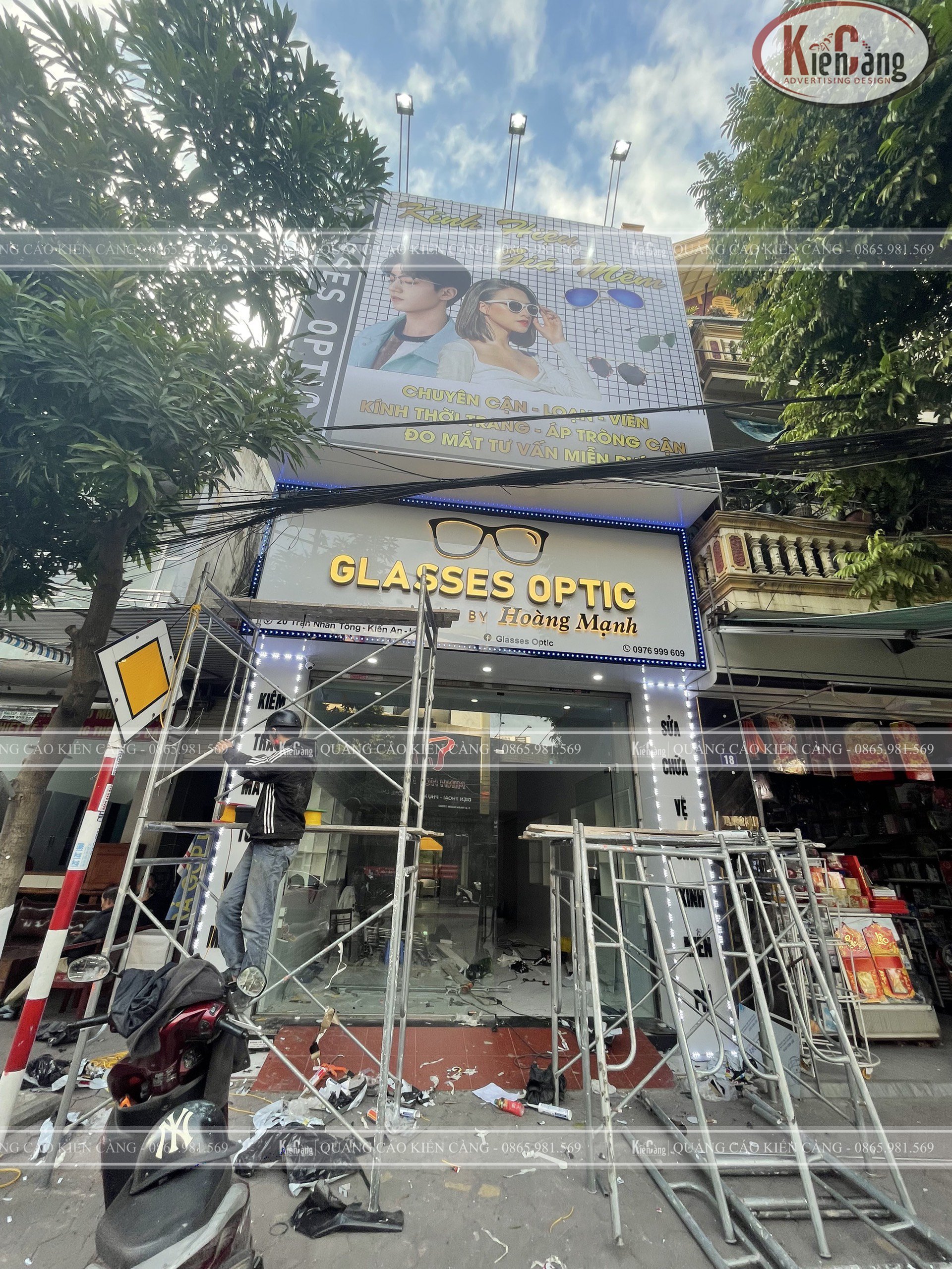 Hình ảnh thi công biển hiệu cửa hàng kính mắt Hoàng Mạnh