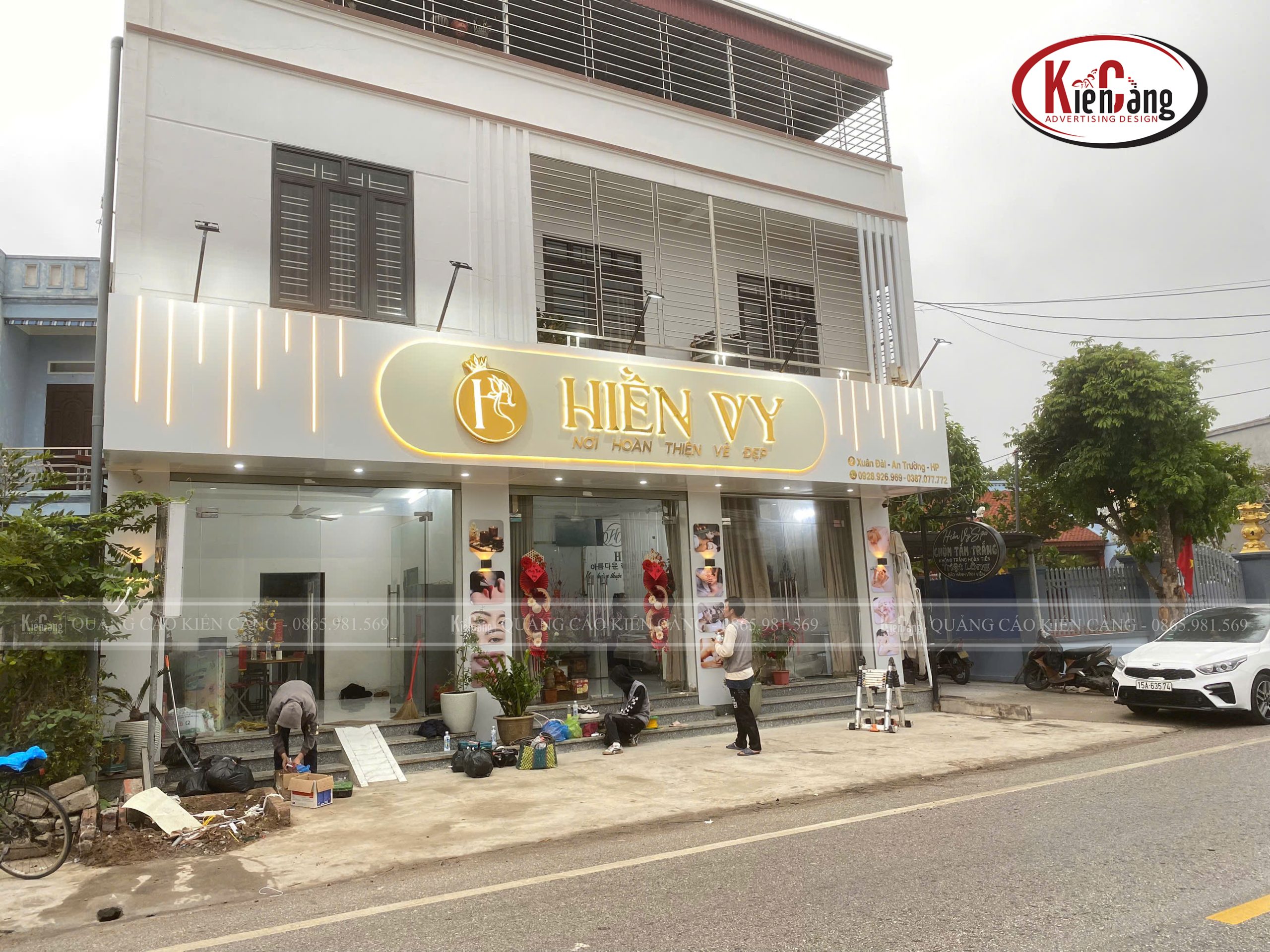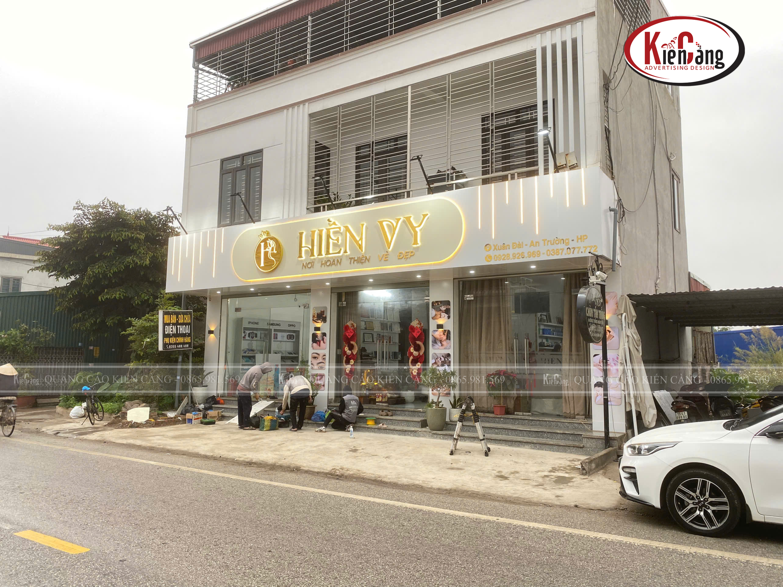 Trong lĩnh vực làm đẹp, một biển hiệu chuyên nghiệp và ấn tượng chính là “gương mặt đại diện” giúp thương hiệu ghi điểm ngay từ cái nhìn đầu tiên. Dự án biển hiệu HIỀN VY – Nơi hoàn thiện vẻ đẹp là minh chứng rõ ràng cho sự kết hợp hài hòa giữa thẩm mỹ và hiệu quả nhận diện.